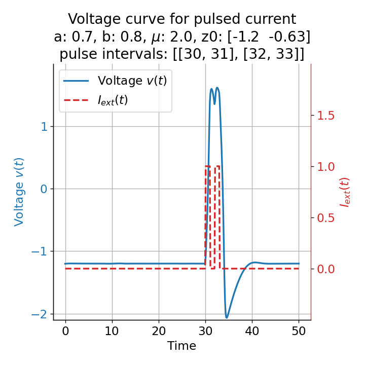 - Ian Cooper, *Doing physics with Python/Matlab: FitzHugh-Nagumo model for spiking neurons*ꜛ