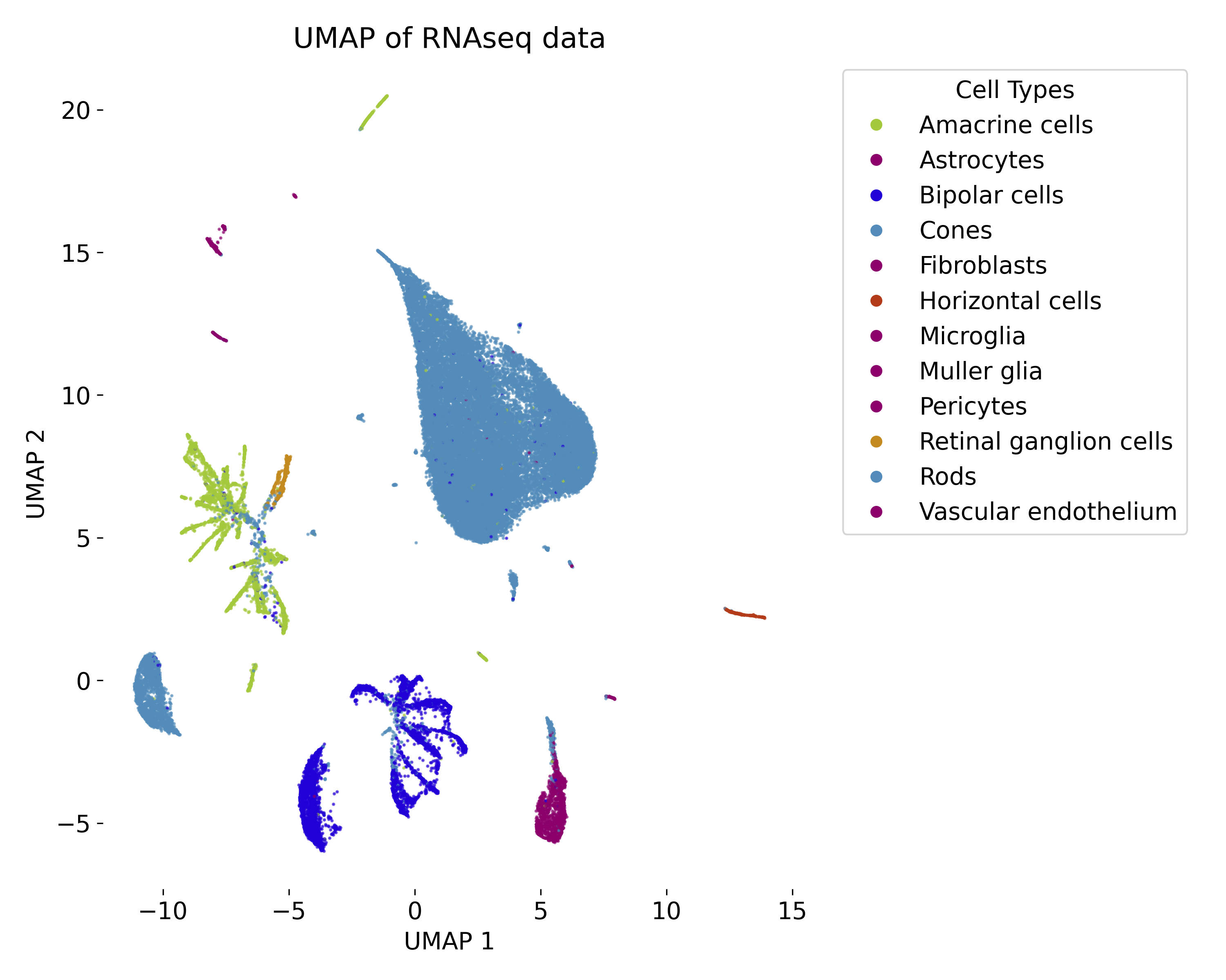 In the exercise, we will apply UMAP to a RNAseq dataset and explore the resulting low-dimensional embedding. We will compare the UMAP visualization with the ground truth labels and vary the parameters of the model to observe the impact on the embedding.