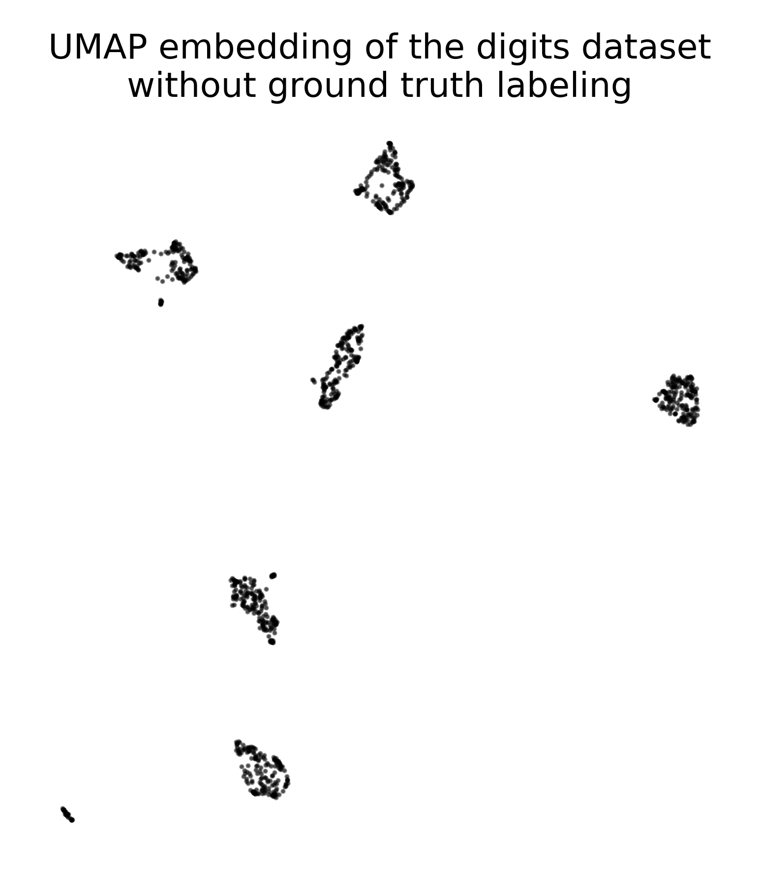 UMAP embedding of the digits dataset without ground truth labeling.