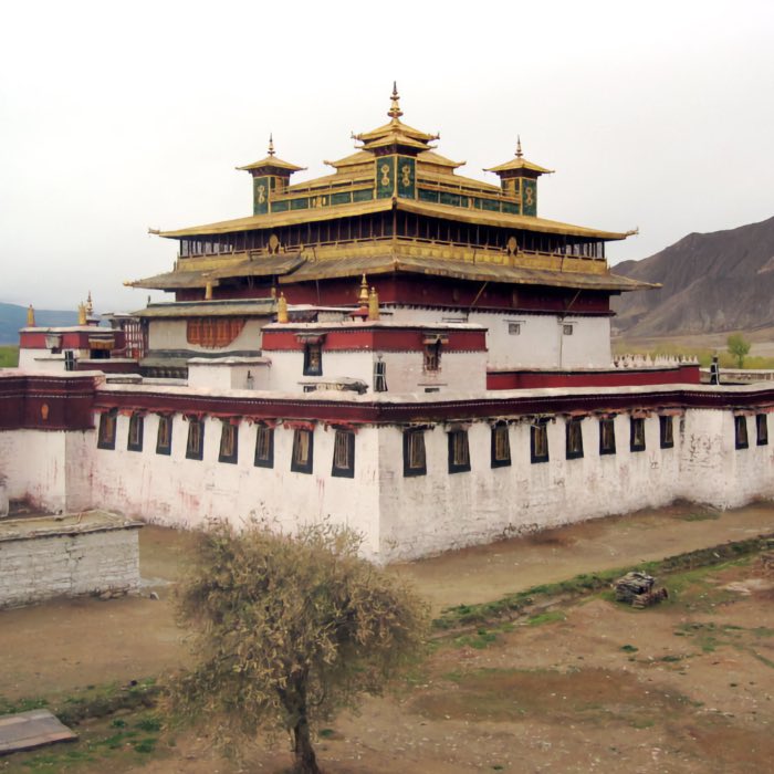 Left: Mandala of the Kasuga Shrines, coloured paint and gold on silk, hanging scroll (kakemono), Japan, Nanbokucho period, 2nd half of the 14th century. The picture shows the sacred landscape with Mount Kasuga and Mount Mikasa in the background. Four Shinto shrines are arranged in a row, surrounded by cloister-like corridors. A fifth shrine stands across from the sanctuary. The shrines are dedicated to the five deities of the powerful Fujiwara family, who relocated when the capital was moved from Asuka to Heijo (today known as Nara) in the region of Mount Kasuga in 710. The two pagodas in the foreground form part of the Buddhist Kōfuku-ji and were also moved from Asuka to Nara as the temples of the Fujiwara clan. The five Kasuga gods are depicted in the guise of five cult figures of the Buddhist pantheon, floating on the clouds above the two mountains. To peacefully assimilate the foreign religion of Buddhism in Japan, attempts were made to connect Shintoism and Buddhism at an early stage by declaring that the Shinto gods were manifestations of Buddhist deities. Accordingly, they appear in their Buddhist “archetypes” in the pictures shown here. In all likeli-hood, this fusion of Shintoism and Buddhism did not meet any major opposition because the local deities had not been portrayed in images until this time. Seen in an exhibition at the Museum für Ostasiatische Kunst, Cologne, in August 2024.