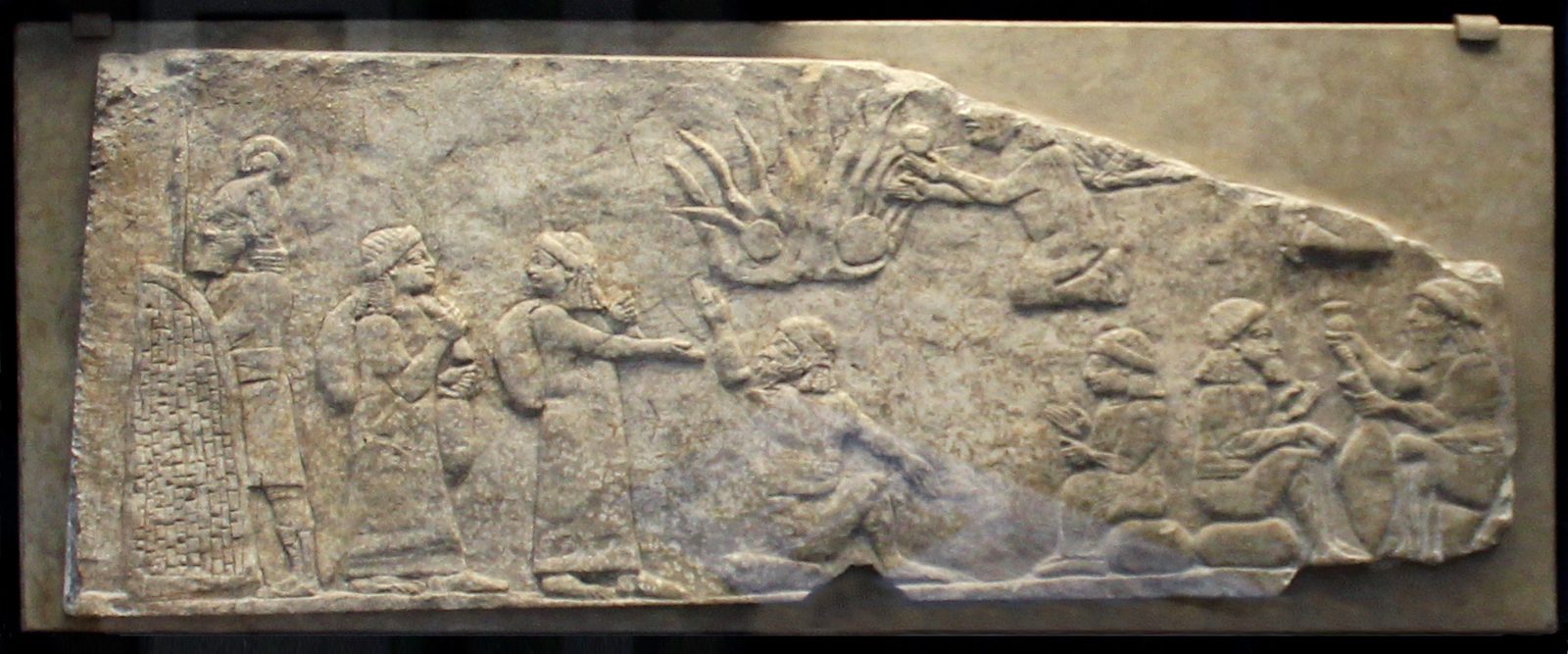 Babylonian prisoners under the surveillance of an Assyrian guard, reign of Ashurbanipal 668–630 BCE, Nineveh. Source: Wikimedia Commonsꜛ (license: CC BY-SA 1.0)