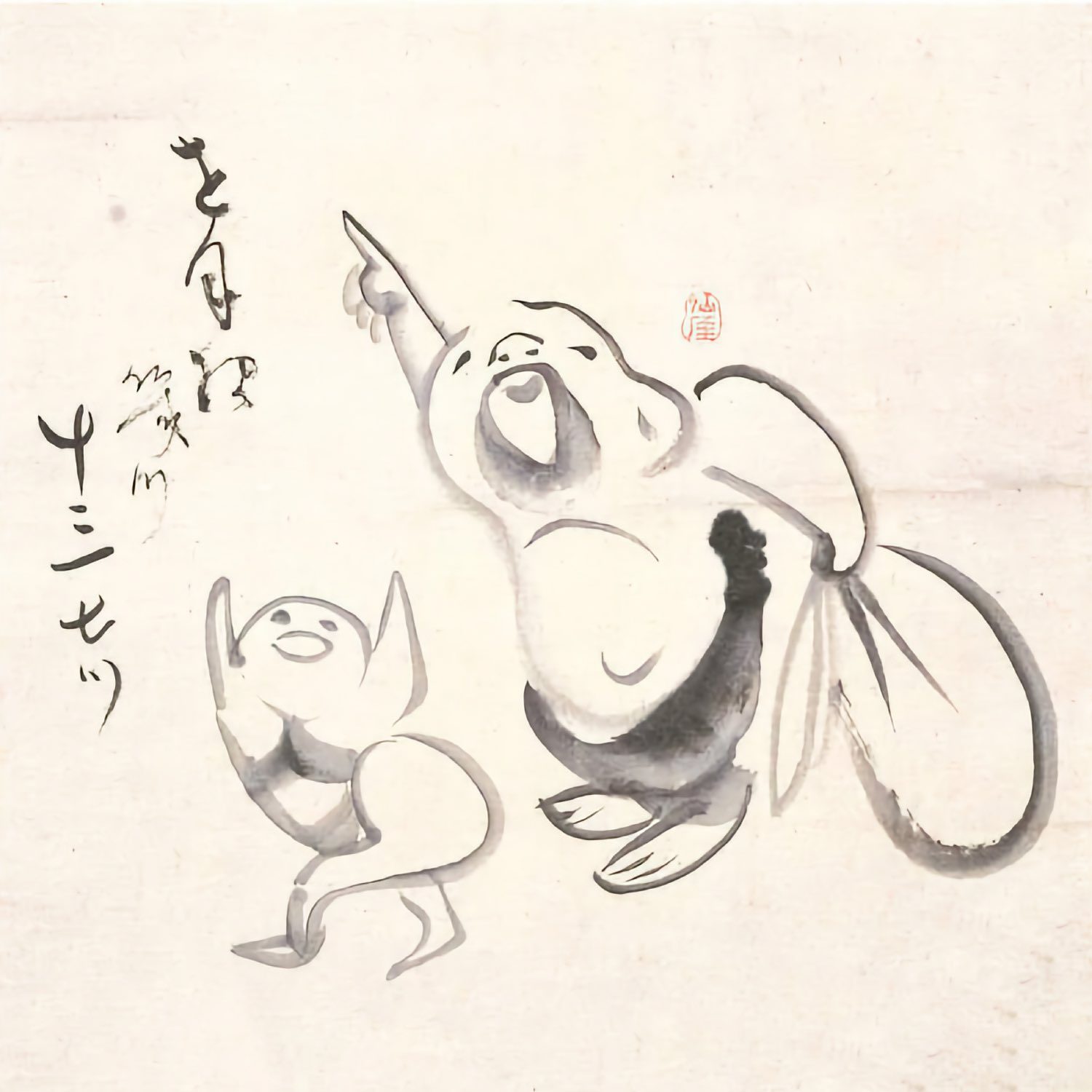 Which month is it?, Sengai, before 1838. “Which month is it?”, a question that is no question at all. In this playful zenga (Zen painting), Sengai confronts the absurdity of temporal fixation through humor: the figures gesture skyward, puzzled or proclaiming, yet the real teaching lies in their spontaneity. Time, like self, dissolves in the immediacy of the moment. There is no ‘right’ season, only ‘suchness’, right here, now. Source: Wikimedia Commonsꜛ (license: public domain; modified)