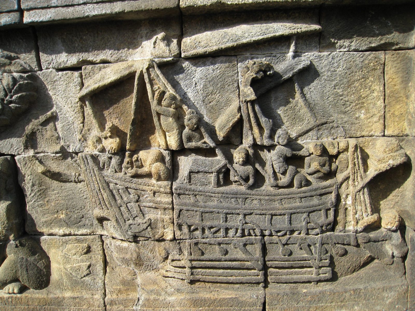 Ancient Javanese vessel depicted in Borobudur. The Srivijaya Empire was a major maritime power in Southeast Asia, controlling trade routes and facilitating cultural exchange. The depiction of a ship in the Borobudur temple complex reflects the importance of maritime trade in the region. Source: Wikimedia Commonsꜛ (license: CC BY-SA 3.0)