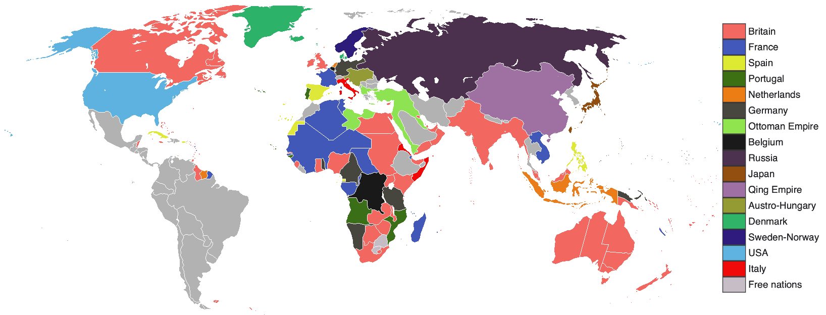 Colonial empires 1898. Source: Wikimedia Commonsꜛ (license: CC BY-SA 3.0) (modified)